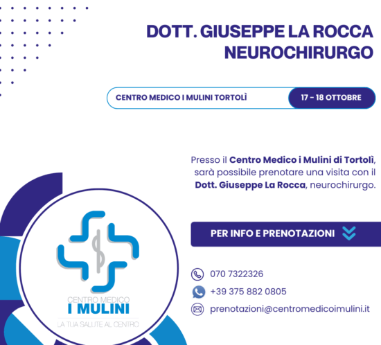 Il 17 e il 18 Ottobre al Centro Medico i Mulini Tortolì, visiterà il Dott. Giuseppe La Rocca, dirigente medico presso l’Unità Operativa Complessa di Neurochirurgia del P...